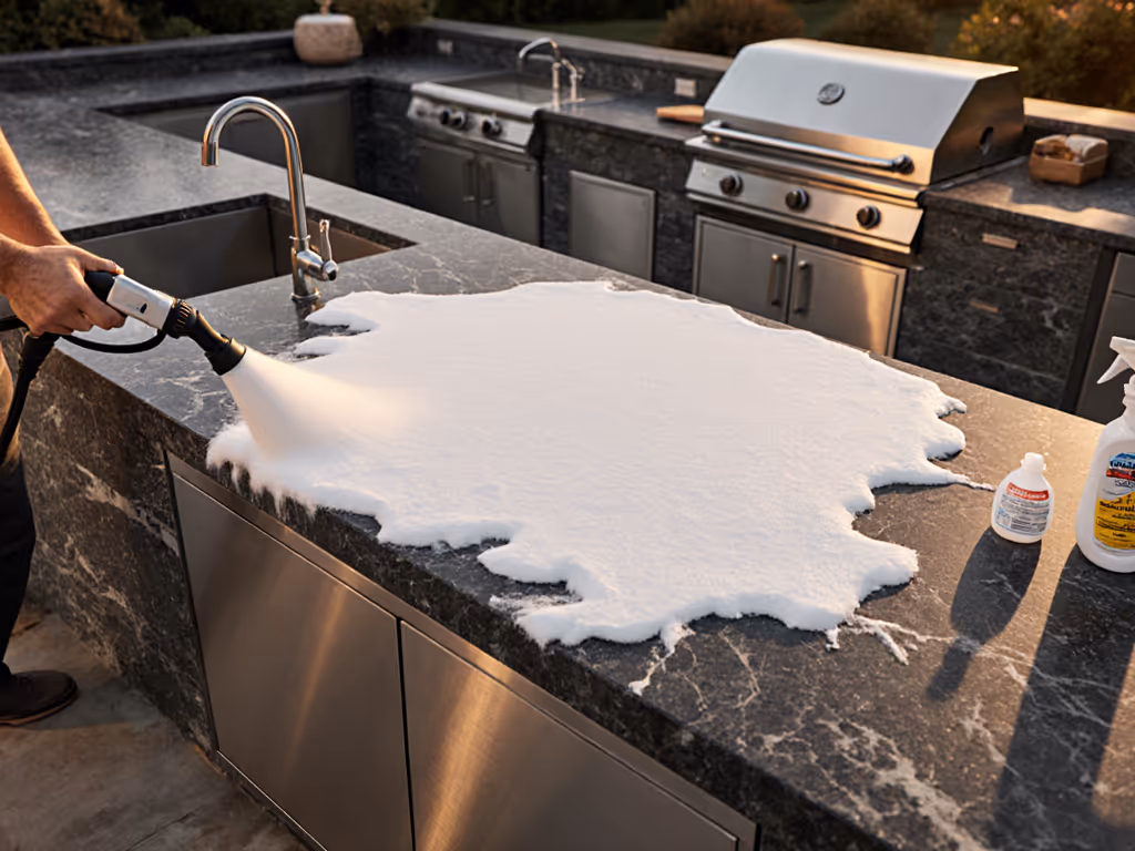 Many outdoor kitchen owners make the mistake of skipping the foam pre-wash phase, jumping straight to pressure rinsing. This forces the equipment to work harder than necessary, often requiring unsafe PSI levels that risk damage. My chemistry-first approach uses foam cannons to deliver precise dwell times that break down contaminants before pressure contact.